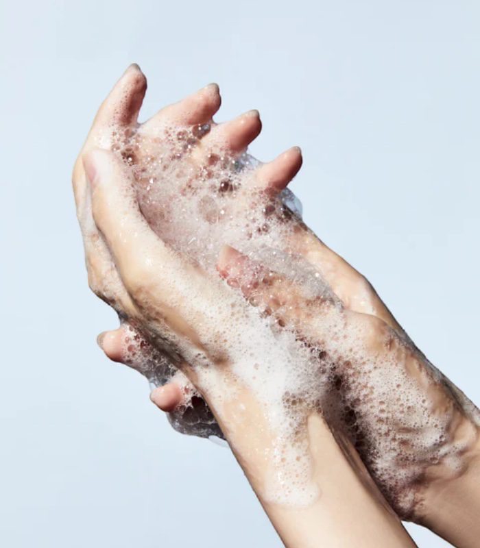 • Naneste malé množství gelu na dlaně a napěňte