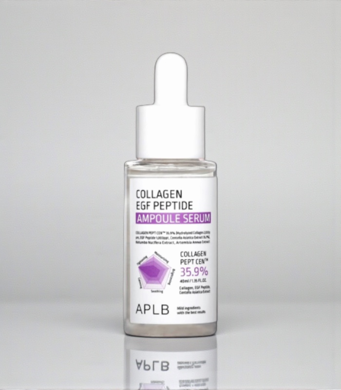 APLB – Collagen EGF Peptide Ampoule Serum je koncentrované pleťové sérum typu ampule určené pro podporu elasticity, regenerace a celkového zpevnění pleti. Spojuje kolagen, EGF a peptidový komplex do lehké, rychle vstřebatelné textury, která intenzivně pečuje o pleť bez pocitu zatížení. Sérum cílí na mdlý vzhled, ztrátu pružnosti a první i viditelnější známky stárnutí. Značka APLB staví tento produkt na funkční kombinaci aktivních látek s vysokou snášenlivostí.