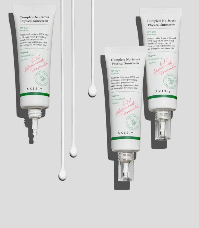 Axis-y – Complete No-Stress Physical Sunscreen SPF50+/PA++++ je inovativní fyzikální opalovací krém, který poskytuje vysokou ochranu proti slunečnímu záření s faktorem SPF50+ a PA++++. Díky lehké textuře se snadno roztírá, rychle vstřebává a nezanechává nežádoucí bílé stopy ani pocit mastnoty. Je speciálně navržen tak, aby chránil citlivou pokožku před škodlivými účinky UVA a UVB paprsků, a zároveň ji hloubkově hydratoval a uklidňoval.