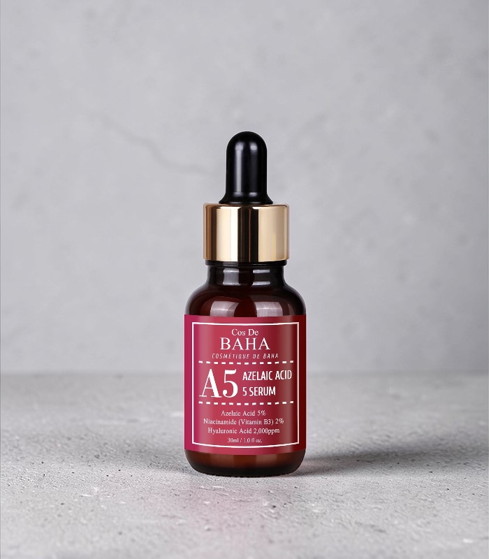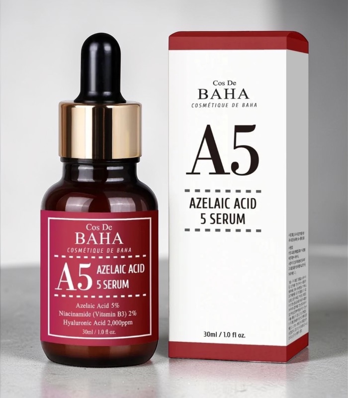 COS DE BAHA – Azelaic Acid 5% Serum je pleťové sérum zaměřené na sjednocení tónu pleti, zklidnění podráždění a zlepšení celkového vzhledu pokožky. Toto Azelaic Acid 5% Serum využívá účinky kyseliny azelaové v kombinaci s hydratačními složkami, které pomáhají vyvážit pleť a podpořit její čistší vzhled.