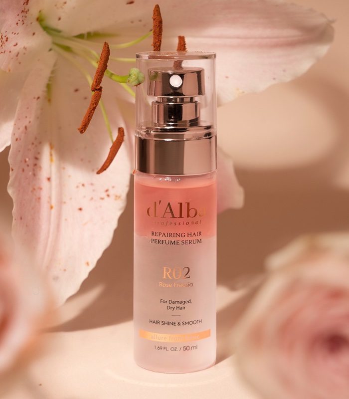d’Alba – Professional Repairing Hair Perfume Serum kombinuje výživu, hydrataci a jemnou parfemaci v jednom elegantním kroku. Toto vlasové sérum ošetřuje poškozené a suché vlasy, zatímco je zahalí do sofistikované vůně inspirované italskou elegancí.