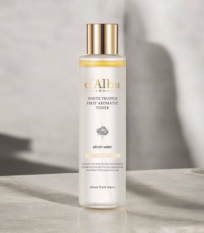 D’Alba White Truffle First Aromatic Toner nabízí jedinečný zážitek již v prvním kroku vaší každodenní péče o pleť. Speciální veganské složení certifikované italskou značkou V-label a dermatologicky testované institutem Dermatest přináší maximální hydrataci, zklidnění a regeneraci pokožky. Díky obsahu prémiových bílých lanýžů pocházejících z italského Piemontu získává vaše pleť exkluzivní antioxidační ochranu a pocit komfortu. Aromatická kombinace citrusových a květinových tónů navíc promění každou aplikaci v příjemný relaxační rituál.