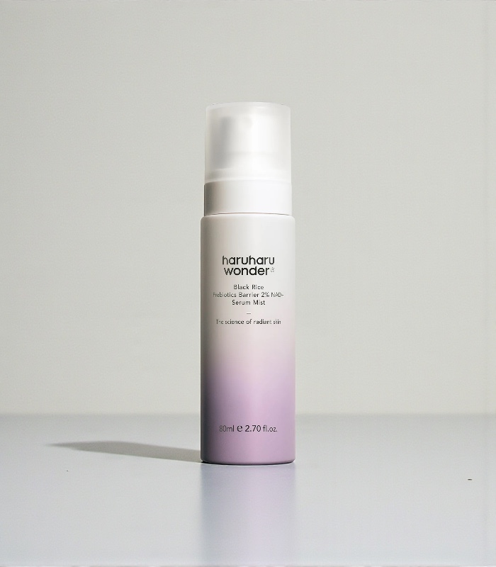 Haruharu Wonder – Black Rice Probiotics Barrier NAD+ Serum Mist je lehká hydratační mlha se sérovým složením, která podporuje kožní bariéru, hydrataci a celkový komfort pleti během dne. Spojuje fermentovanou černou rýži, probiotické složky a komplex NAD+, díky čemuž pomáhá pleti udržet rovnováhu, svěží vzhled a ochranu před vnějšími vlivy. Jemný rozprašovač umožňuje rovnoměrnou aplikaci bez narušení make-upu a dělá z této mlhy praktický krok každodenní rutiny. Značka Haruharu Wonder staví produkt na kombinaci moderní technologie a šetrné péče.