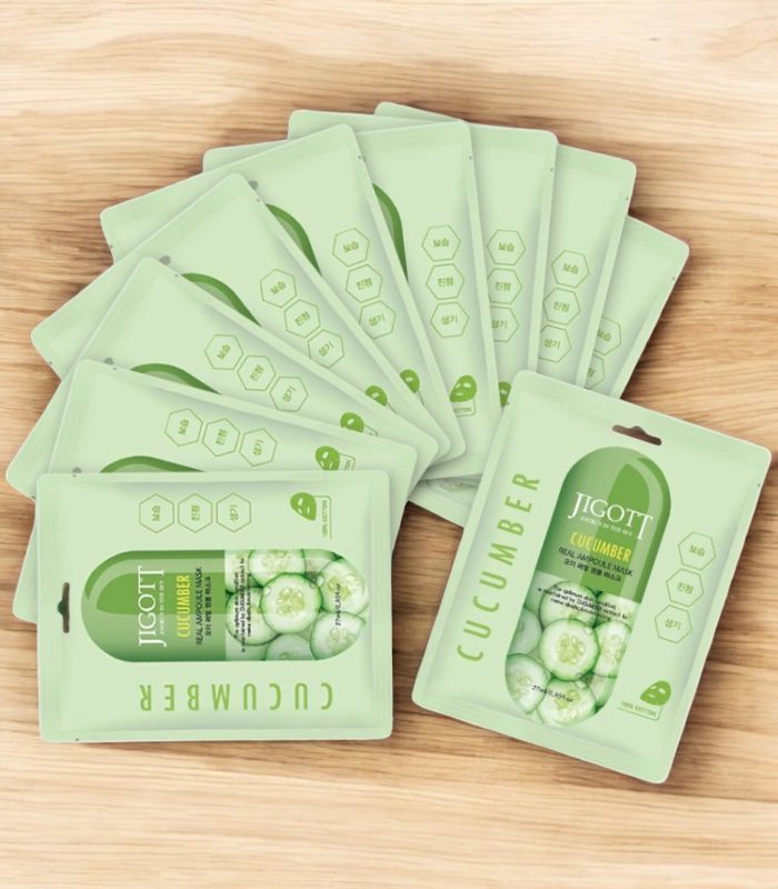 Domů Obchod Masky Jigott – Cucumber Real Ampoule Mask – Okurková zklidňující pleťová maska 27 ml