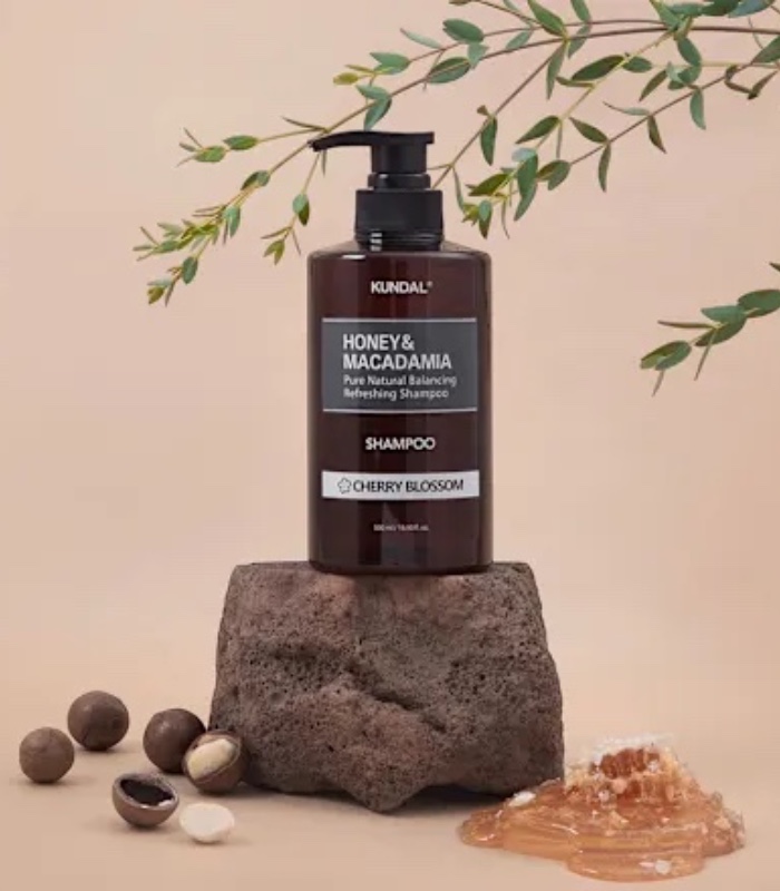 Domů Obchod Péče o vlasy Kundal – Honey & Macadamia Nature Shampoo – Cherry Blossom – Hydratační šampon pro jemné a lesklé vlasy 500ml