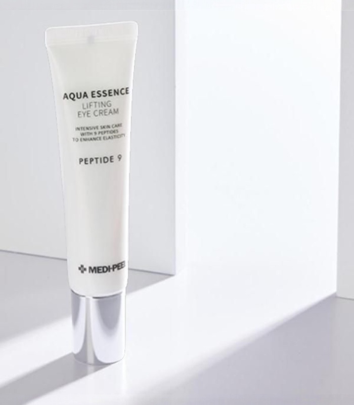 Medi-Peel – Peptide 9 Aqua Essence Lifting Eye Cream Anti-Wrinkle je hydratační oční krém s peptidy, který podporuje pevnější vzhled očního okolí a pomáhá zlepšit pružnost jemné pokožky kolem očí. Tento Peptide 9 Aqua Essence Lifting Eye Cream Anti-Wrinkle kombinuje peptidový komplex, hydratační složky a zklidňující látky, které podporují regeneraci a revitalizaci citlivé oblasti očního okolí.