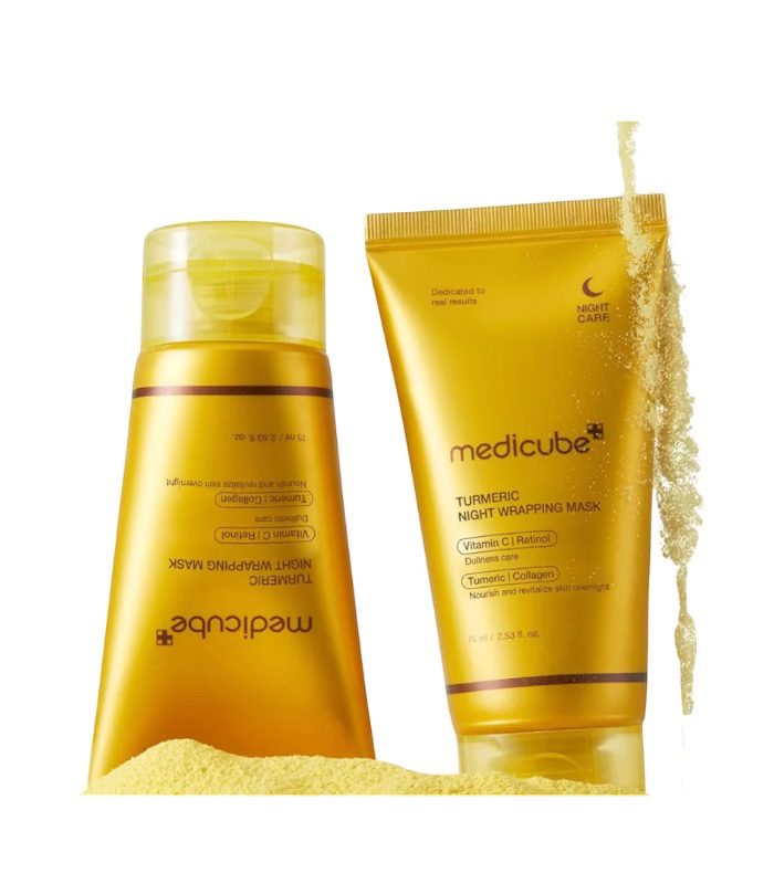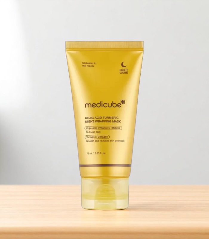Medicube – Kojic Acid Turmeric Night Wrapping Mask je intenzivní noční maska, která během spánku pomáhá rozjasnit tón pleti, zklidnit podráždění a podpořit rovnoměrnou texturu pokožky. Ideální volba pro pleť se sklonem k pigmentaci, nerovnoměrnostem a zašedlosti.