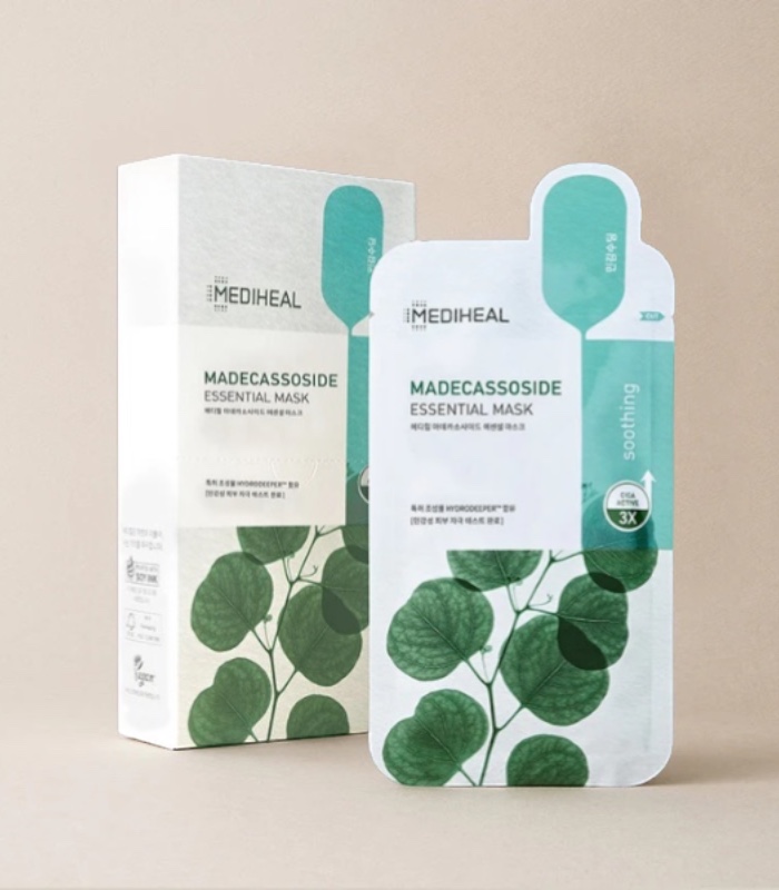 Mediheal – Madecassoside Essential Mask je zklidňující plátýnková maska, která pomáhá redukovat podráždění, podpořit regeneraci pokožky a dodat pleti potřebnou hydrataci. Tato Madecassoside Essential Mask využívá účinky madecassosidu a centelly asiatica, díky čemuž přispívá ke zklidnění citlivé a namáhané pleti.