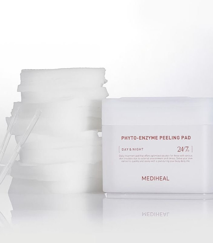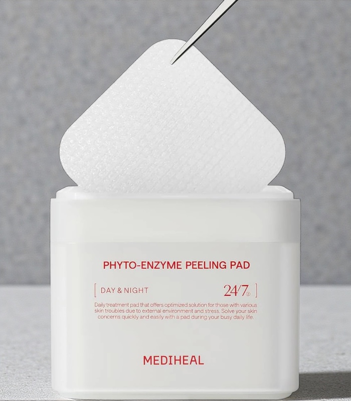Mediheal – Phyto-enzyme Peeling Pad jsou jemné exfoliační tonerové polštářky navržené pro šetrné odstranění odumřelých kožních buněk a zjemnění textury pleti. Využívají enzymatickou exfoliaci rostlinného původu, která působí účinně, ale zároveň ohleduplně k citlivé pokožce. Polštářky pleť čistí, vyhlazují a připravují na lepší vstřebávání následné péče bez pocitu podráždění. Značka Mediheal staví tento produkt na kombinaci jemné exfoliace a komfortní hydratace pro každodenní rutinu.