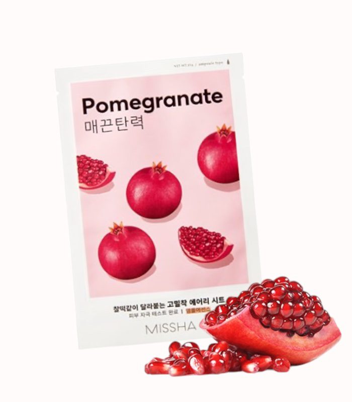 Domů Obchod Masky Missha – Airy Fit Sheet Mask – Pomegranate – Plátýnková maska se zjemňujícím a osvěžujícím účinkem 19g