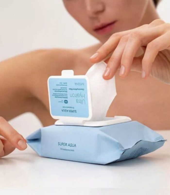 Missha – Čisticí pleťové ubrousky Super Aqua Ultra jemně odstraňují make-up, nečistoty i maz, zatímco kyselina hyaluronová a mořské extrakty zajišťují intenzivní hydrataci. Zanechávají pokožku čistou, hladkou a svěží bez vysušení či podráždění.