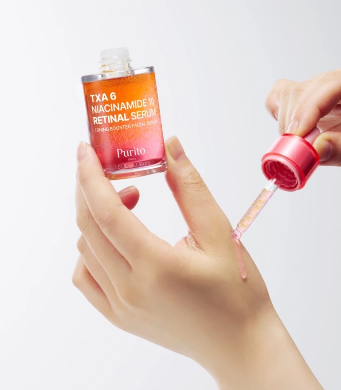 Purito Seoul – TXA 6 Niacinamide 10 Retinal Serum je vysoce cílené pleťové sérum zaměřené na sjednocení tónu pleti, zlepšení textury a podporu hladšího vzhledu. Kombinuje kyselinu tranexamovou (TXA), vysoký podíl niacinamidu a retinal v lehké, rychle se vstřebávající textuře, která se snadno zařazuje do večerní rutiny. Sérum pomáhá pleti působit jasněji, vyrovnaněji a komfortně při pravidelném používání. Značka Purito Seoul staví tuto péči na funkčních aktivních látkách a šetrném přístupu.