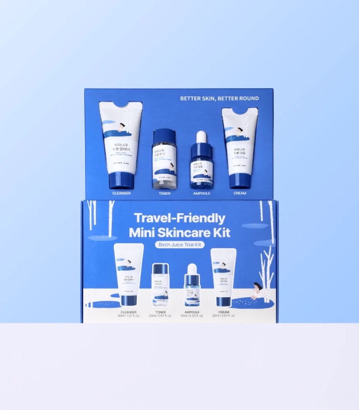 Round Lab – Birch Juice Trial Kit je hydratační cestovní sada, která pomáhá obnovit rovnováhu pleti, posílit její bariéru a dodat dlouhotrvající svěžest. Všechny produkty z řady Birch Juice pracují s extraktem z břízy, který je známý pro svou schopnost udržovat hydrataci, zklidnit citlivou pokožku a zlepšit její elasticitu. Kompaktní velikosti se skvěle hodí na cesty, do kabelky nebo jako ideální způsob, jak bezpečně vyzkoušet celou řadu.