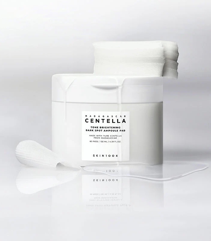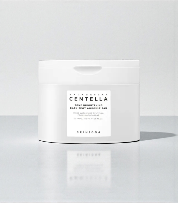 Skin1004 – Madagascar Centella Tone Brightening Dark Spot Ampoule Pad jsou rozjasňující ampulové tamponky určené k péči o pleť s nerovnoměrným tónem a viditelnými tmavými skvrnami. Spojují zklidňující centellu z Madagaskaru s rozjasňujícím přístupem, který pomáhá zlepšit celkový vzhled pokožky a podpořit sjednocenější tón. Tamponky poskytují cílené působení v lehké ampulové esenci a lze je používat jako tonizační krok i jako lokální masku. Značka Skin1004 se dlouhodobě zaměřuje na minimalistická složení s vysokou snášenlivostí.