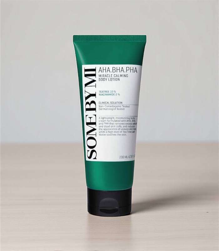 Some By Mi – AHA BHA PHA Miracle Calming Body Lotion je zklidňující tělové mléko s exfoliačním komplexem kyselin, které podporuje hladší, čistší a vyváženější vzhled pokožky těla. Toto tělové mléko s AHA BHA PHA pomáhá redukovat drsnost, podporuje obnovu povrchu pokožky a zároveň dodává hydrataci bez zatížení.
