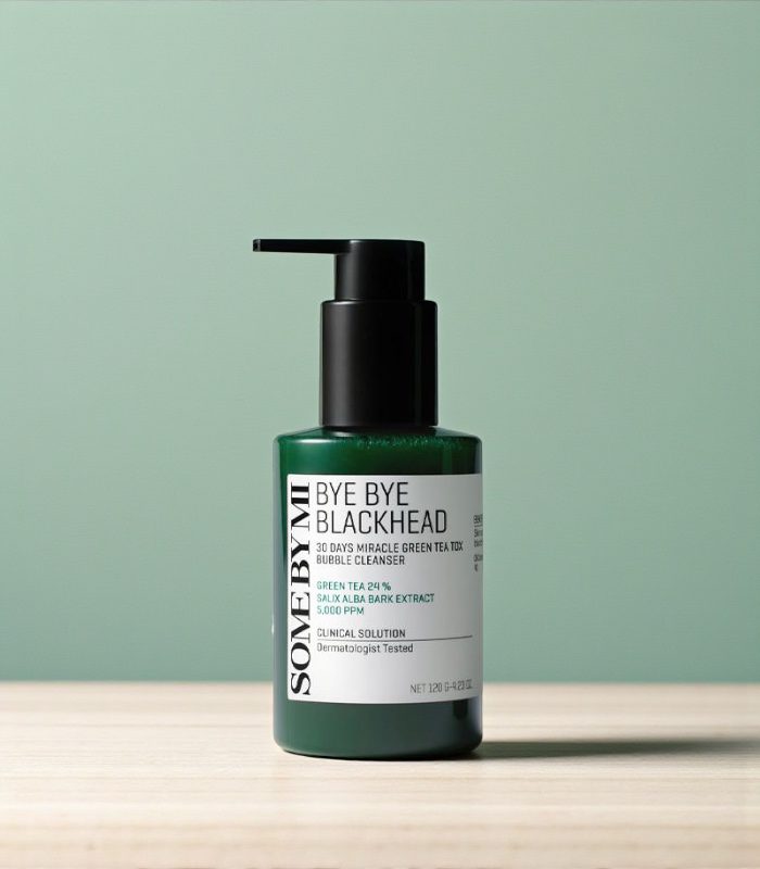 Some By Mi – Bye Bye Blackhead 30 Days Miracle Green Tea Tox Bubble Cleanser je inovativní čisticí pěna, která během 30 dní pomáhá viditelně redukovat černé tečky, maz a nečistoty v pórech. Obsahuje extrakt ze zeleného čaje, BHA kyseliny a komplex 16 čajových extraktů, které dohromady detoxikují a zklidňují pleť. Po nanesení se gel promění v jemné bublinky, které šetrně odstraní nečistoty bez podráždění.