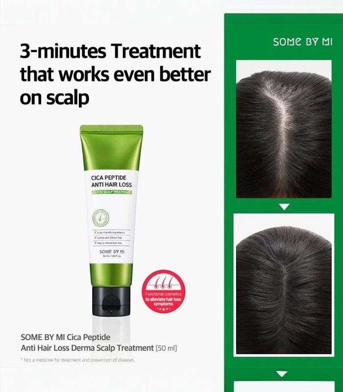 Some By Mi – Cica Peptide Anti Hair Loss Derma Scalp Treatment je intenzivní bezoplachová péče proti vypadávání vlasů. Díky kombinaci peptidů, výtažků z centelly asiatiky a biotinu posiluje vlasové kořínky, zklidňuje podrážděnou pokožku hlavy a podporuje růst silnějších a zdravějších vlasů.