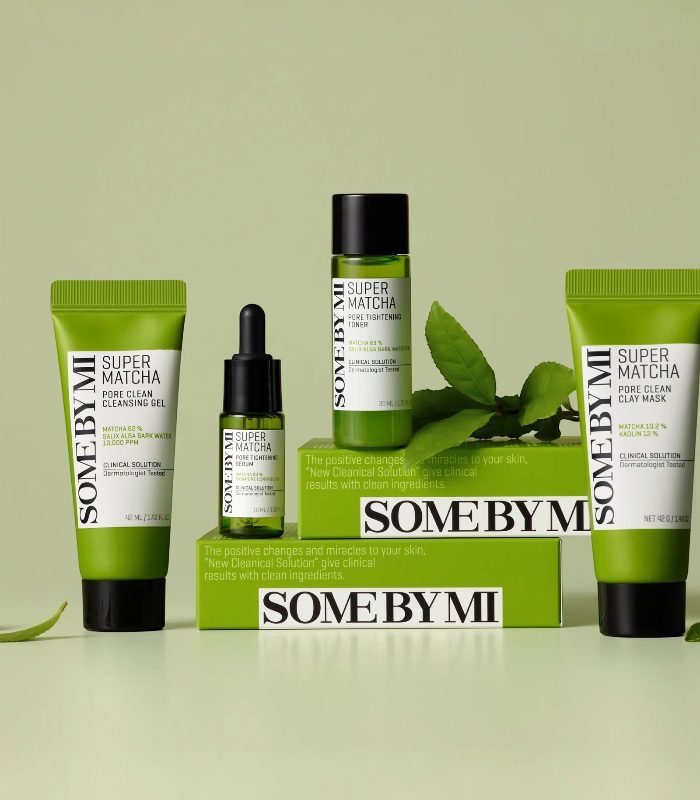 Domů Obchod Kremy a serumy Some By Mi – Super Matcha Pore Care Starter Kit – Sada snižující viditelnost rozšířených pórů – Tonikum 30 ml + Sérum 10 ml + Maska 42 g + Čisticí gel 42 ml