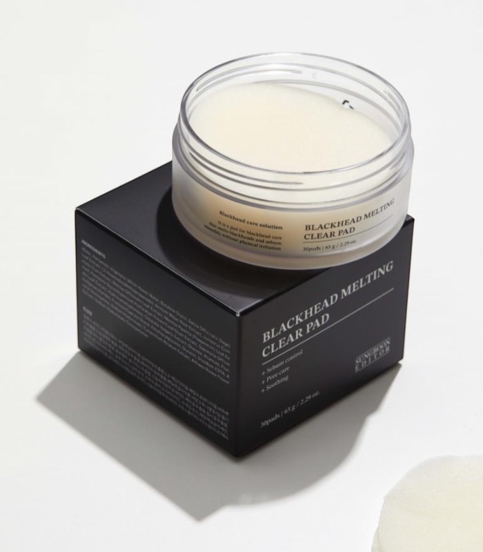 Sungboon Editor – Blackhead Melting Clear Pad je exfoliační tampon s čisticí esencí, který podporuje redukci černých teček a zlepšení textury pleti. Tyto čisticí polštářky pomáhají uvolnit nahromaděný maz, odstranit odumřelé buňky a podpořit čistší vzhled pórů bez mechanického dráždění.