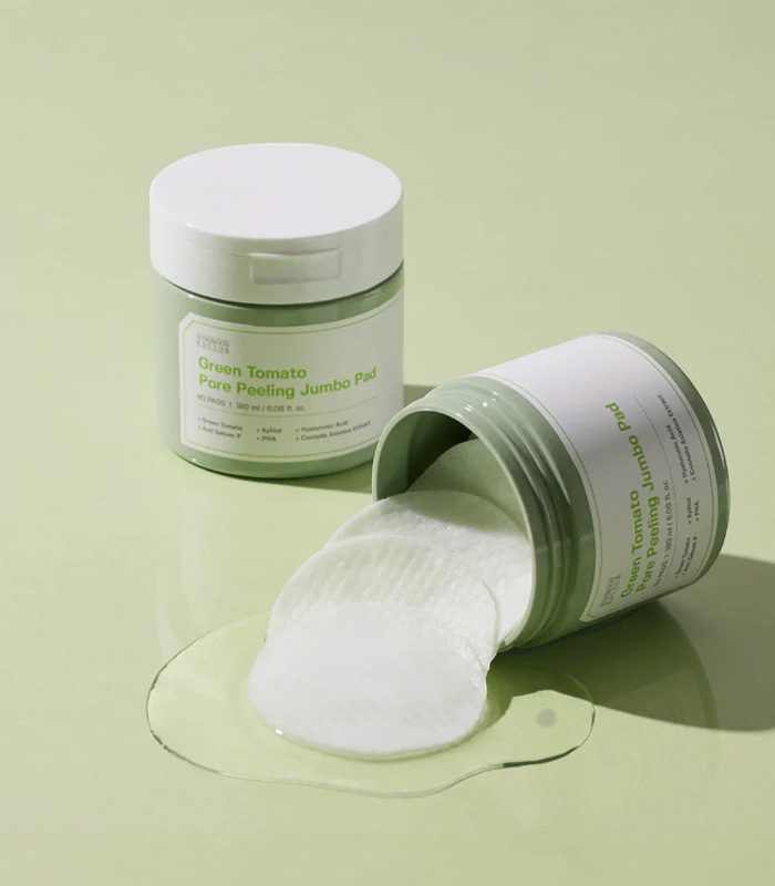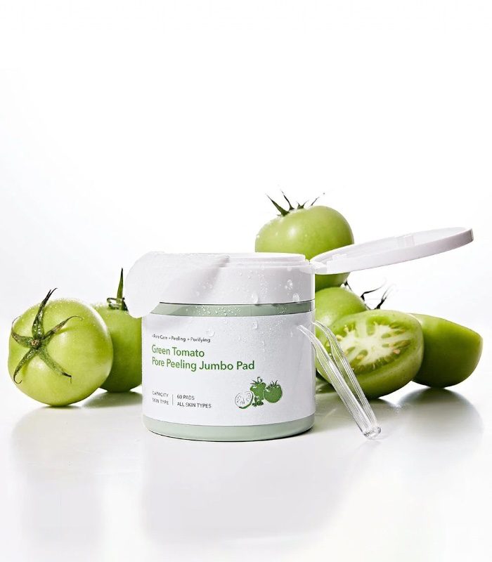 Sungboon Editor – Green Tomato Pore Peeling Jumbo Pad jsou exfoliační peelingové tamponky ve velkém (jumbo) formátu, navržené pro cílenou péči o póry, přebytečný maz a nerovnou texturu pleti. Spojují extrakt ze zeleného rajčete s jemně exfoliačními složkami, které pomáhají dočistit pleť, vyhladit její povrch a podpořit svěží, čistý vzhled bez nadměrného podráždění. Díky většímu rozměru umožňují rychlou a efektivní aplikaci na celé ploše obličeje. Značka Sungboon Editor se zaměřuje na funkční řešení s okamžitě znatelným efektem.