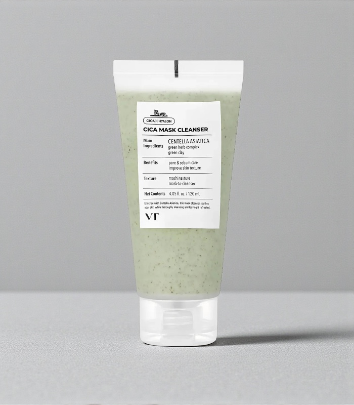 VT Cosmetics – CICA Mask Cleanser je multifunkční čisticí maska, která spojuje výhody jemného čisticího gelu, krémové masky a pěny v jednom kroku. Tento inovativní produkt pomáhá vyčistit pleť do hloubky, zklidnit podráždění a dodat pokožce rovnováhu díky ikonickému CICA komplexu. Čisticí maska poskytuje příjemný pocit svěžesti, odstraňuje přebytečný maz a zároveň pleť nevysušuje, což z ní dělá ideální volbu pro každodenní použití.