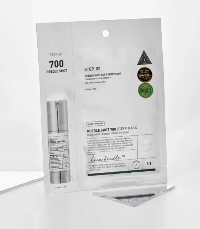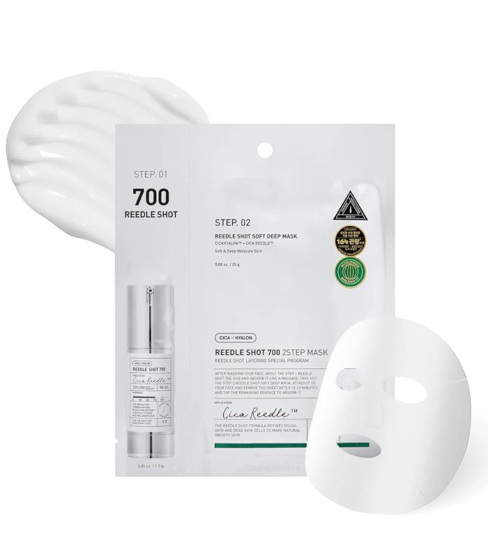 Jedná se o unikátní dvoufázový systém péče o pleť navržený pro intenzivní domácí ošetření. První krok využívá esenci Reedle Shot 700, která obsahuje mikrojehličkové struktury CICA REEDLE™ odvozené z extraktu Centella Asiatica. Tyto mikroskopické “jehličky” jemně stimulují pleť a vytvářejí mikrokanálky, které dramaticky zlepšují pronikání aktivních složek z následné péče. Druhým krokem je aplikace zklidňující a vyživující plátýnkové masky, která dodává pleti potřebné látky a maximalizuje účinky prvního kroku. Koncentrace 700 značí vysokou intenzitu ošetření, určenou pro pokročilou péči o pleť s výraznějšími problémy.