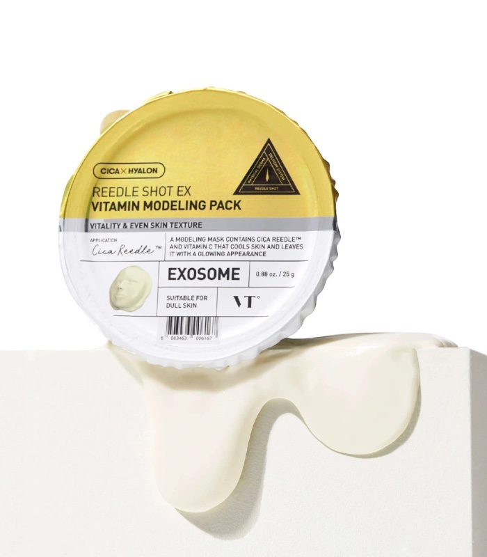 VT Cosmetics – Reedle Shot Ex Vitamin Modelling Pack je inovativní péče o pleť, která spojuje modelovací masku s účinnými rozjasňujícími složkami. Díky obsahu vitamínu C, niacinamidu a rostlinných extraktů maska revitalizuje pleť, sjednocuje její tón a dodává jí zdravý vzhled. Jemná textura se snadno nanáší a po odstranění zanechává pokožku svěží, projasněnou a hydratovanou.