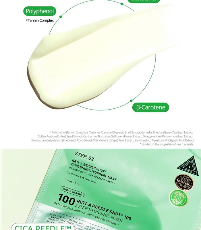 Dvoukroková péče kombinuje Reedle Shot ampuli s enkapsulovaným retinalem a hydrogelovou masku pro cílený anti-aging účinek. Mikročástice (reedle – spicule z mořské houby) pomáhají aktivním látkám proniknout do hlubších vrstev pleti. Druhý krok s hydrogelem pleti dodává hydrataci a zklidnění.