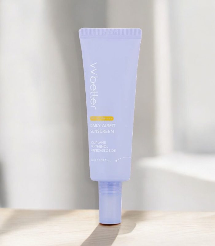 Vvbetter Daily Airfit Sunscreen SPF 50+ představuje inovativní řešení v ochraně před sluncem díky jedinečné technologii AirFit. Tato technologie vytváří ultralehkou a vzdušnou texturu, která se rychle vstřebává a nezanechává mastný film nebo viditelné stopy. Díky tomu umožňuje pokožce volně dýchat, což z něj činí perfektní volbu pro každodenní používání.